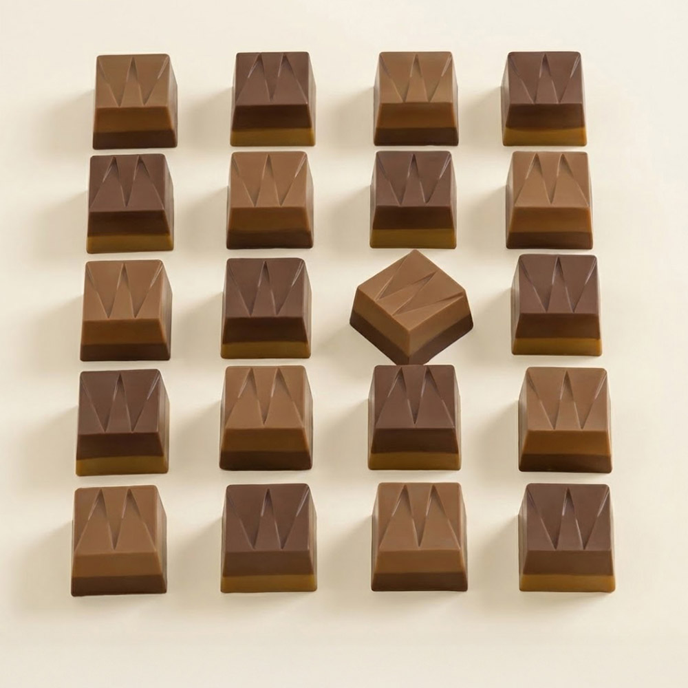 Classico cioccolatino della tradizione piemontese, il cremino mantiene la sua tipica struttura a strati e la consistenza morbida. Proposto nelle varianti al pistacchio e al caffè.
